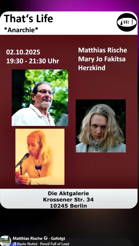 Hiermit lädt der Autor Matthias Rische, der einige Lesebühnen mit seinen Gästen in Berlin bespielt wieder zur Lesung, Gesprächen und Musik ein. Mit seinen Gästen Rosangela De araujo (Autorin) und sein musikalischer Gast Marlis S